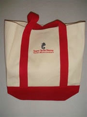 Beach Bags/ Navy Red, Beige, 100% Cotton Canvas, Web Handles, Navy Red